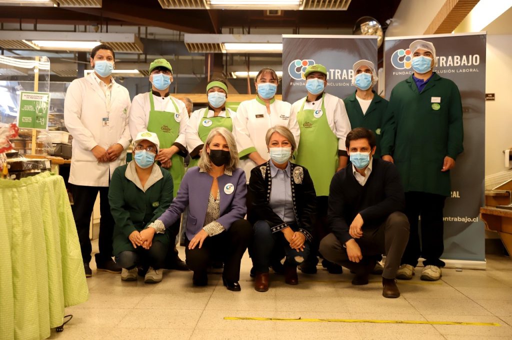 2 de abril 2022.- En el marco de la conmemoración de los cuatro años de vigencia de la Ley de Inclusión Laboral (21.015), la ministra del Trabajo y Previsión Social, Jeannette Jara, sostuvo un encuentro con seis jóvenes con discapacidad que participan del programa de inclusión laboral de la Fundación ConTrabajo y que se desempeñan en la Panadería San Camilo.