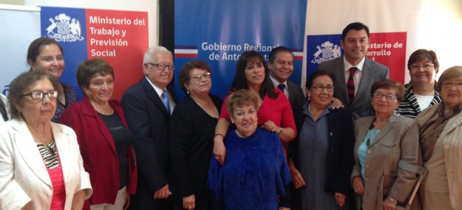El Intendente de la Región de Antofagasta, Valentín Volta, junto a los seremis de Gobierno, Stefania Carvajal; del Trabajo y Previsión Social, Pablo Rojas; de Desarrollo Social, Angelique Araya y la directora regional del Instituto de Previsión Social (IPS), Lenka Marangunic, compartieron un desayuno junto a los primeros beneficiados del Bono Invierno.