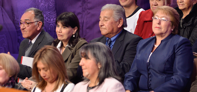 La ministra del Trabajo y Previsión Social, Javiera Blanco, junto a la Presidenta de la República, Michelle Bachelet, participaron en la ceremonia de firma del compromiso por el buen trato al adulto mayor, en ceremonia realizada en La Moneda.