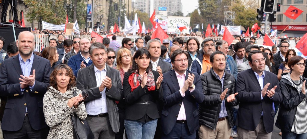 La ministra del Trabajo y Previsión Social, Javiera Blanco, junto a los subsecretarios Francisco Javier Díaz y Marcos Barraza, participó del acto convocado por la Central Unitaria de Trabajadores (CUT), donde destacó el avance que ha tenido el proyecto de ley que moderniza el sistema de relaciones laborales en el país, el cual espera esté aprobado antes del 31 de agosto de este año.