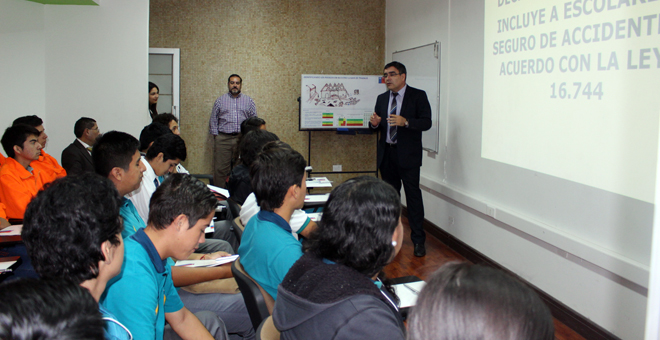 Alumnos de la especialidad de explotación minera de los liceos Pablo Neruda y Chile Norte participaron de una capacitación organizada por el Instituto de Seguridad Laboral (ISL) sobre el Seguro de Accidentes Escolares y la ley de Accidentes del Trabajo.