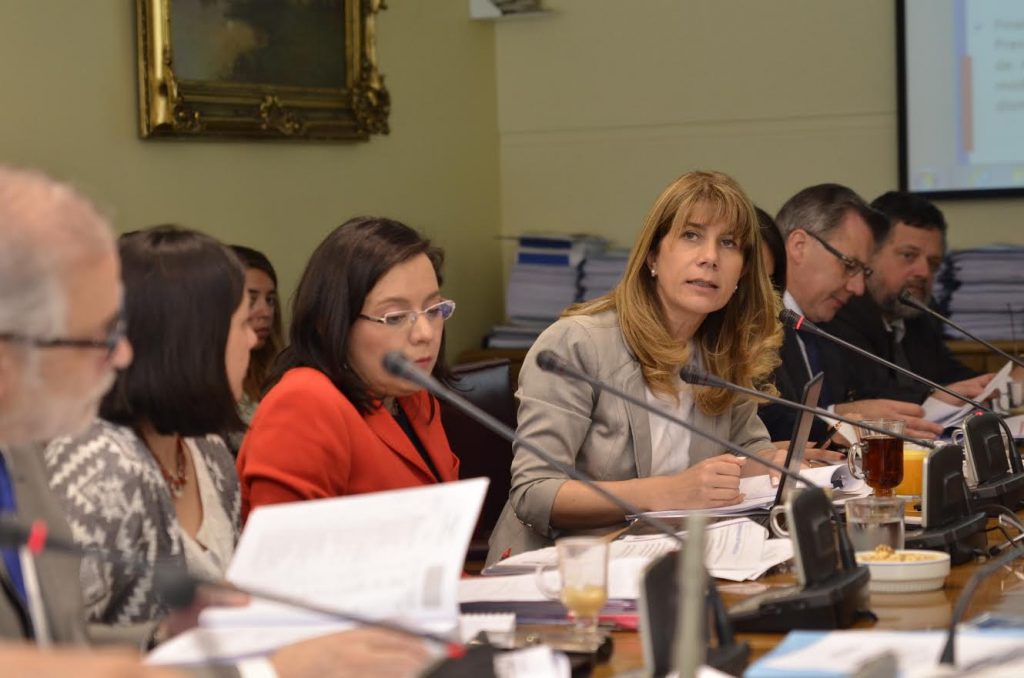 La ministra del Trabajo y Previsión Social, Ximena Rincón, junto a la subsecretaria de la cartera, Jeannette Jara, asisten a la Comisión de Hacienda del Senado para analizar el proyecto de ley que concede un reajuste extraordinario de 10 por ciento a las pensiones básicas solidarias.