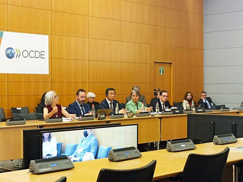 París, 07 de junio de 2022. “La enseñanza que nos ha dejado este proceso, es que nuestro país debe institucionalizar mecanismos de protección social que operen automáticamente ante crisis de la envergadura que vivimos”, dijo esta mañana la ministra del Trabajo y Previsión Social, Jeannette Jara, al exponer en la sesión plenaria de la Reunión de Ministros del Trabajo y Empleo de la Organización para la Cooperación y el Desarrollo Económico (OCDE), que culminó hoy en París, Francia.