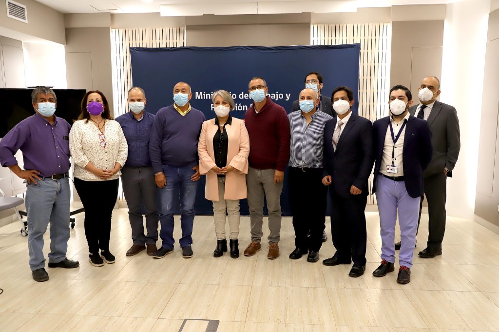 La ministra del Trabajo y Previsión Social, Jeannette Jara, se reunió esta mañana con la senadora Alejandra Sepúlveda y el diputado Félix Bugueño, ambos de la Región de O´Higgins. Los parlamentarios asistieron acompañados de exonerados políticos de San Fernando y dirigentes sindicales de la empresa Copeval, quienes le manifestaron a la secretaria de Estado sus inquietudes respecto a materias previsionales, laborales y de higiene y salud en el trabajo. La autoridad se comprometió a estudiar los temas y les planteó la necesidad de recurrir a la Inspección del Trabajo para que realice una fiscalización en la zona.