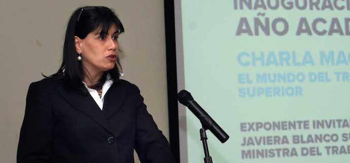 Una charla magistral dictó ayer la Ministra del Trabajo y Previsión Social, Javiera Blanco, en la Universidad de Los Lagos, con la cual la casa de estudio dio por inaugurado el año académico en el campus Santiago.