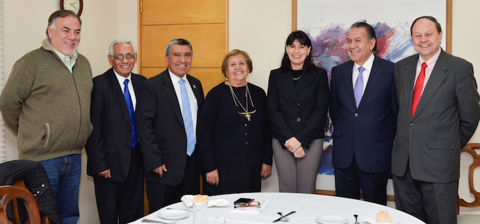 Una delegación de Obispos Evangélicos se reunió con la Ministra del Trabajo y Previsión Social, Javiera Blanco, oportunidad en la que junto al Diputado Osvaldo Andrade, conversó diversos temas de interés para este sector, como analizar la situación previsional de los ministro de culto. La delegación evangélica estuvo integrada, entre otros, por los Obispos Emiliano Soto y Francisco Rivera; y la pastora Juanita Albornoz.