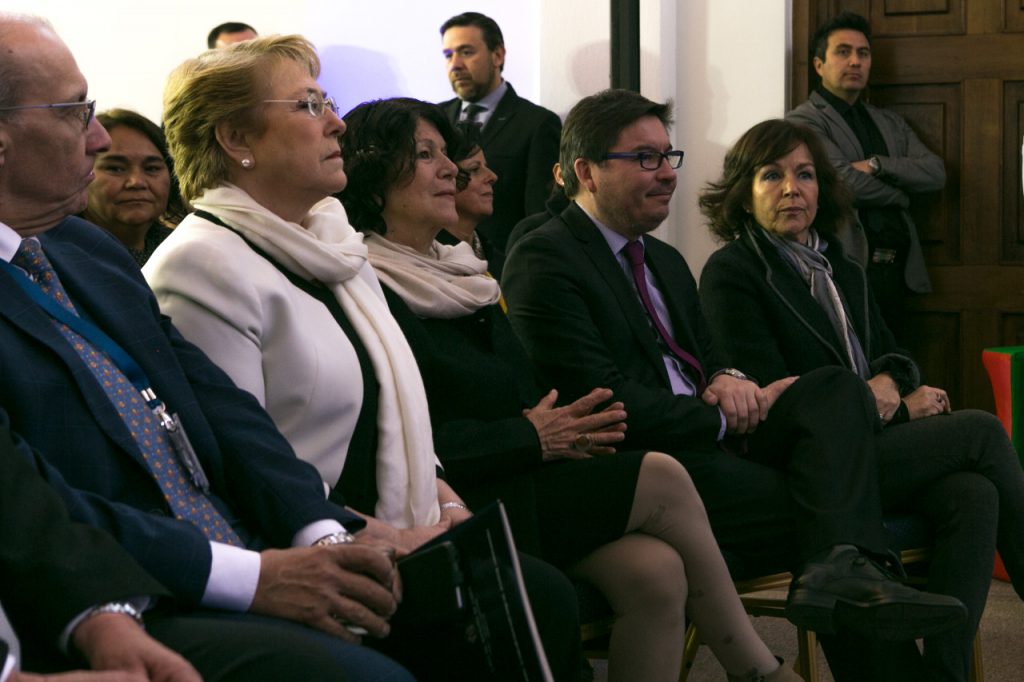 Esta mañana, la ministra del Trabajo y Previsión Social, Alejandra Krauss, acompañó a la Presidenta de la República, Michelle Bachelet, a la entrega de la medalla conmemorativa por su segundo período presidencial y la emisión postal de “Un nuevo trato con la niñez”, ceremonia que se realizó en la Casa de Moneda, ubicada en Estación Central.