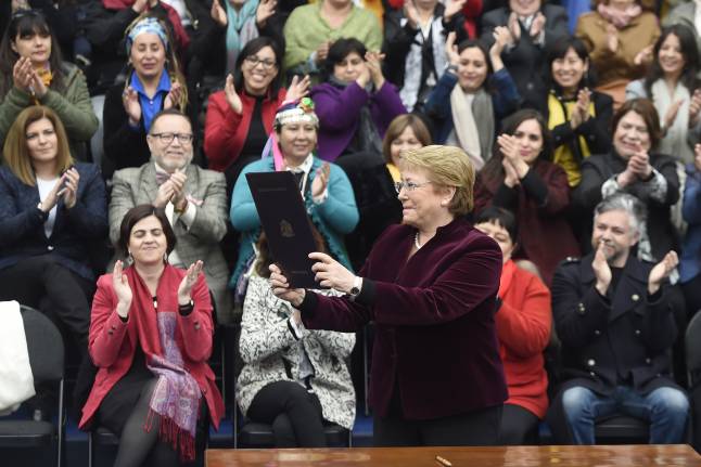 La iniciativa -uno de los compromisos de campaña emblemáticos de la presidenta Bachelet- fue aprobada por el Congreso a comienzos de agosto tras dos años y medio de tramitación y se prevé que la norma comience a aplicarse a mediados de diciembre.