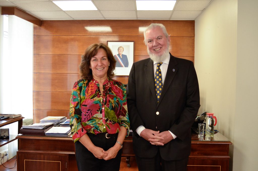 La ministra del Trabajo y Previsión Social, Alejandra Krauss, recibió esta mañana la visita protocolar del Director de la Academia Diplomática “Andrés Bello”, Juan Somavía. Con motivo de su trayectoria ligada al mundo laboral donde ayudó a promover oportunidades productivas para los trabajadores, el abogado y diplomático chileno fue elegido en 1999 como Director General de la Organización Internacional del Trabajo (OIT), siendo reelegido para un segundo mandato hasta 2009 y luego en el mismo año para un tercer mandato hasta 2014.