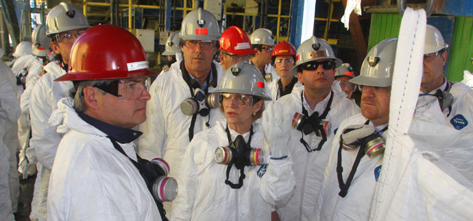 La secretaria de Estado fue acompañada por el ministro de Minería, Hernán De Solminihac; por el intendente de la Sexta región, Patricio Rey; los seremis del Trabajo y Medio Ambiente de la región de O’Higgins; y por dos expertos en higiene y seguridad de la Dirección del Trabajo.