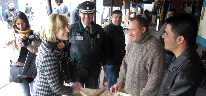 Junto a su par de Justicia, Teodoro Ribera y el director de Gendarmería, Luis Masferrer, la secretaria de Estado recorrió la galería donde cerca de 200 internos desarrollan cursos de capacitación en artesanía y otros oficios.