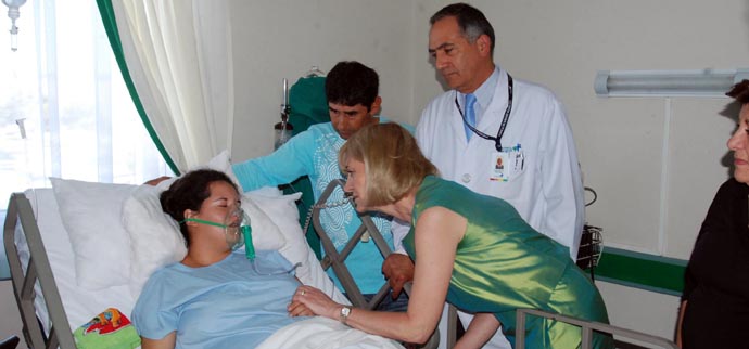 Luego de inspeccionar la faena del packing Los Nobles, la ministra Matthei se trasladó a la Clínica Integral de la ciudad de Rancagua, donde se encuentra internado un trabajador en condiciones graves, tras sufrir los efectos de la emanación de amoníaco.