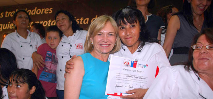 La ministra del Trabajo y Previsión Social, Evelyn Matthei, participó este jueves a la graduación de alumnas del programa Emprender en Libertad, iniciativa que vincula capacitación y microemprendimiento y que este año aumentará los cupos para la reinserción social de internas a nivel nacional.
