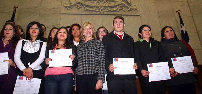 La ministra del Trabajo y Previsión Social, Evelyn Matthei, encabezó la certificación de más de 330 alumnos en cursos de cocina, retail, operadores logísticos, entre otros, del programa “Formación para el Trabajo” del Servicio Nacional de Capacitación y Empleo (Sence), que otorga capacitaciones gratuitas a costo cero.