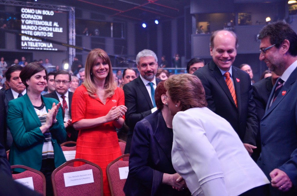 La Ministra del Trabajo y Previsión Social, Ximena Rincón, asistió a la jornada inaugural de la 27° Teletón 2015, campaña que se da a conocer bajo el slogan “La Hacemos Todos”. En la oportunidad asistieron los secretarios de Estado acompañando a SE., la Presidenta de la República, Michelle Bachelet.