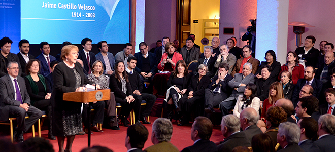 La ministra del Trabajo y Previsión Social, Ximena Rincón, asistió esta mañana a la promulgación de la Ley que autoriza la creación de monumento en memoria del abogado demócrata cristiano y ex ministro de justicia, Jaime Castillo Velasco, quien fue un férreo defensor en diversas causas de Derechos Humanos.