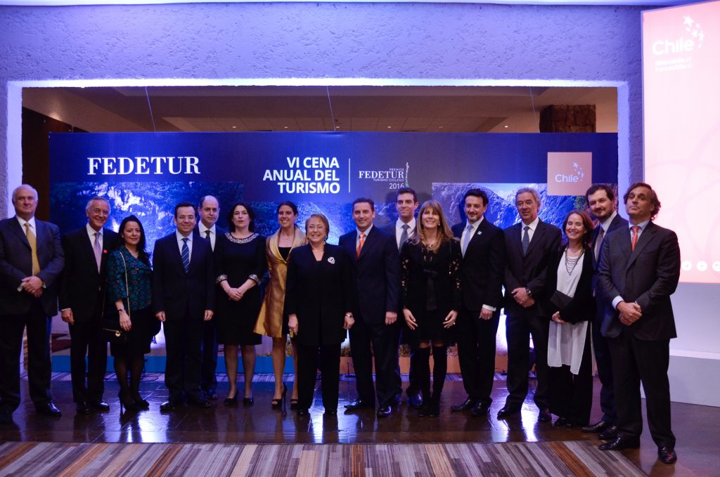 La Ministra del Trabajo y Previsión Social, Ximena Rincón, acompañó a la Presidenta de la República, Michelle Bachelet, a la Cena Anual de la Federación de Empresas de Turismo de Chile, Fedetur 2016, una actividad realizada en Casa Piedra y que reunió a cerca de 400 empresarios del sector.