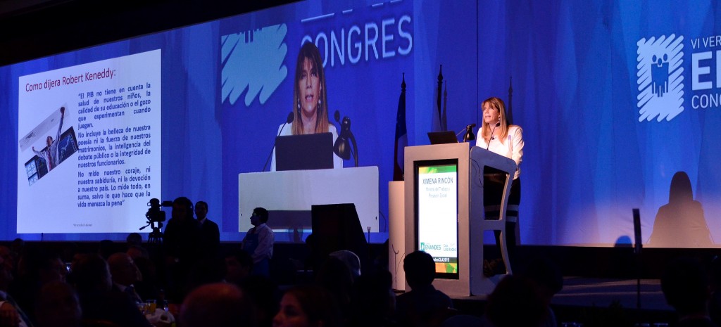 La Ministra del Trabajo y Previsión Social, Ximena Rincón, participó hoy en el Encuentro Nacional Caja Los Andes, Enandes 2015, y realizó una presentación centrada en la importancia de la “felicidad” como variable para avanzar en mejorar la calidad de vida de los trabajadores.