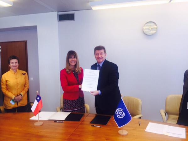 Como parte de la agenda de Ginebra del día de hoy, la secretaria de Estado sostuvo una reunión bilateral con el Director General de la OIT, Guy Ryder. En la oportunidad, se dio paso a la firma del Depósito de documento sobre la ratificación del Convenio 189, en el marco de la Sesión Plenaria de la 104ª Conferencia Internacional del Trabajo.