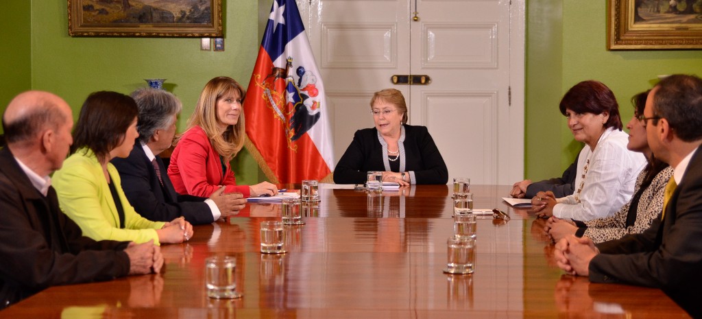 En el Comedor Presidencial del Palacio de La Moneda, la Jefa de Estado, Michelle Bachelet, junto a la ministra del Trabajo y Previsión Social, Ximena Rincón, recibió esta tarde a la directiva de la Unión Nacional de Gremios de Micro, Pequeña, Mediana Empresa, Trabajadores por Cuenta Propia o Autónomos de Chile, UNAPYME-EMT.