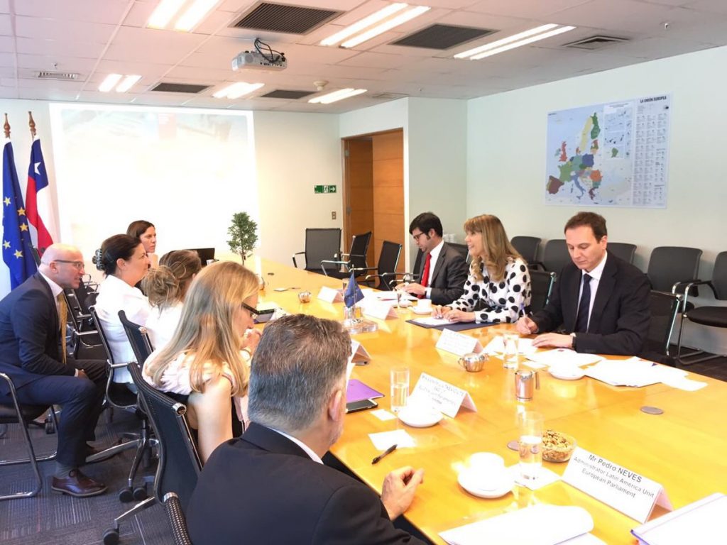La Ministra del Trabajo y Previsión Social, Ximena Rincón, sostuvo hoy una reunión protocolar con representantes del Parlamento Europeo para analizar materias de cooperación laboral.