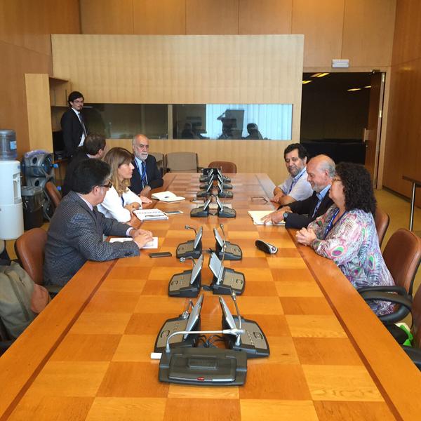 La Ministra del Trabajo, Ximena Rincón, se reunió hoy con el presidente de la Agrupación Nacional de Empleados Fiscales, Raúl de la Puente, quien integra la delegación chilena que participa de la 104ª Conferencia Internacional del Trabajo, en Ginebra. El líder de la Anef abordó con la secretaria de Estado materias relativas a las demandas de los trabajadores del sector público.