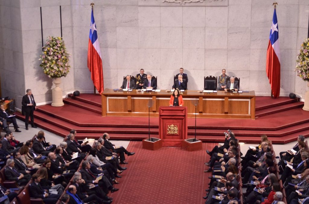 El ministro del Trabajo y Previsión Social, Nicolás Monckeberg, participó en sesión del Congreso Pleno encabezada por el Presidente de la República, Sebastián Piñera, donde las autoridades del Senado y de la Cámara de Diputados, Carlos Montes y Maya Fernández, respectivamente, rindieron la cuenta pública al país, en el Salón de Honor Congreso Nacional.