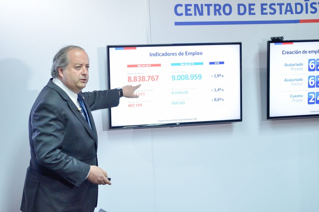 En el Centro de Estadísticas del Empleo (CEE) el Ministro del Trabajo y Previsión Social, Nicolás Mönckeberg, se refirió a las recientes cifras de empleo entregadas por el INE destacando el aumento de las cifras en el empleo asalariado privado, el que representó un 57% de los empleos creados en el último año.