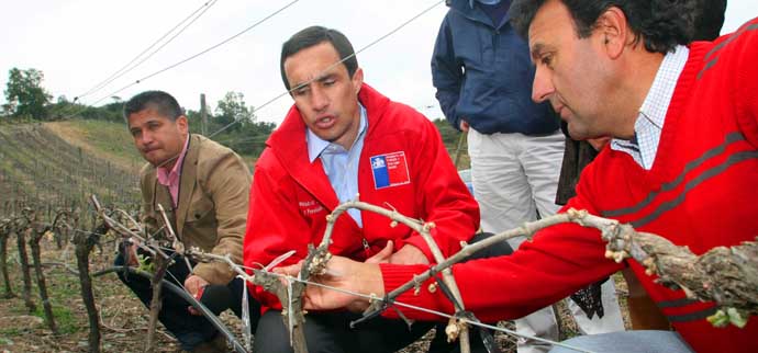 El ministro del Trabajo y Previsión Social, Juan Carlos Jobet, junto a la Seremi de la cartera, Lavinia Ceballos, visitó predio en Casablanca para constatar en terreno efectos en el empleo debido a las heladas que tienen a tres regiones bajo emergencia agrícola y detalló el plan de acción del Gobierno.