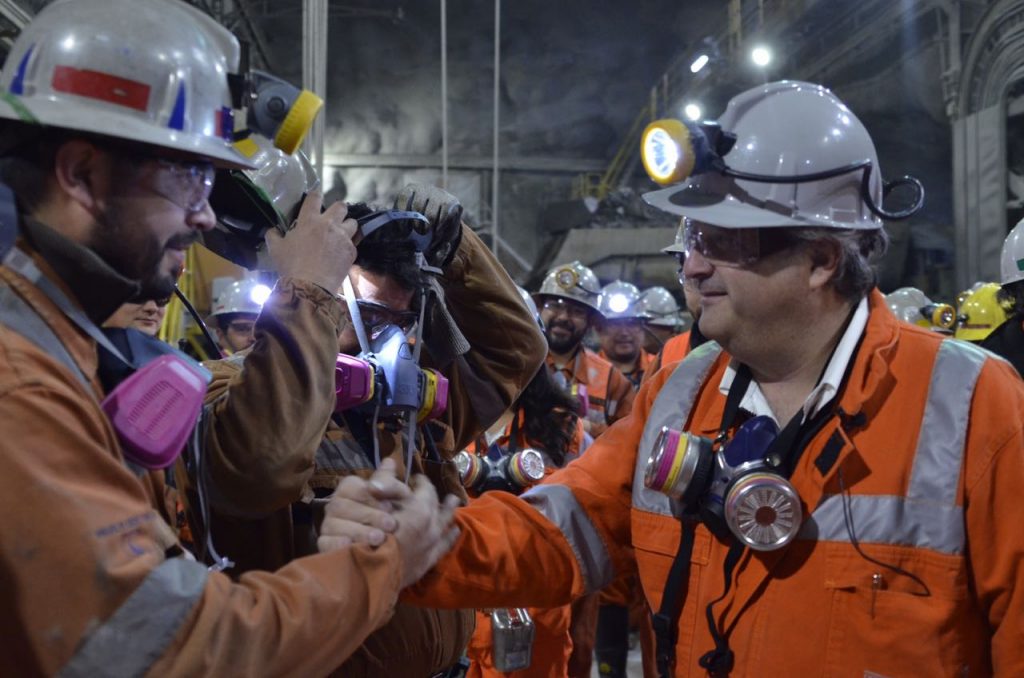 Luego de un recorrido por la mina subterránea de cobre más grande del mundo, el secretario de Estado compartió con los trabajadores de la división y abordó el acuerdo ya alcanzado: “vinimos a celebrar en su lugar de trabajo porque esta semana lograron un tremendo acuerdo, los 5 sindicatos del Teniente lograron cerrar una negociación colectiva que beneficia a más de 3 mil 500 trabajadores y demostraron que con diálogo, que con acuerdo y con entendimiento sí se puede luchar y conseguir buenos derechos para los trabajadores”.