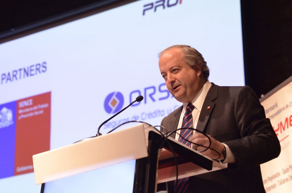 El ministro del Trabajo y Previsión Social, Nicolás Monckeberg, junto a su par de Economía, José Ramón Valente, y los subsecretarios de la cartera, Fernando Arab, y María José Zaldívar, encabezaron la inauguración del 11° Encuentro de Fomento, Capacitación y Servicios para la Micro, Pequeña empresa y Emprendedores (Salón Pyme 2018).