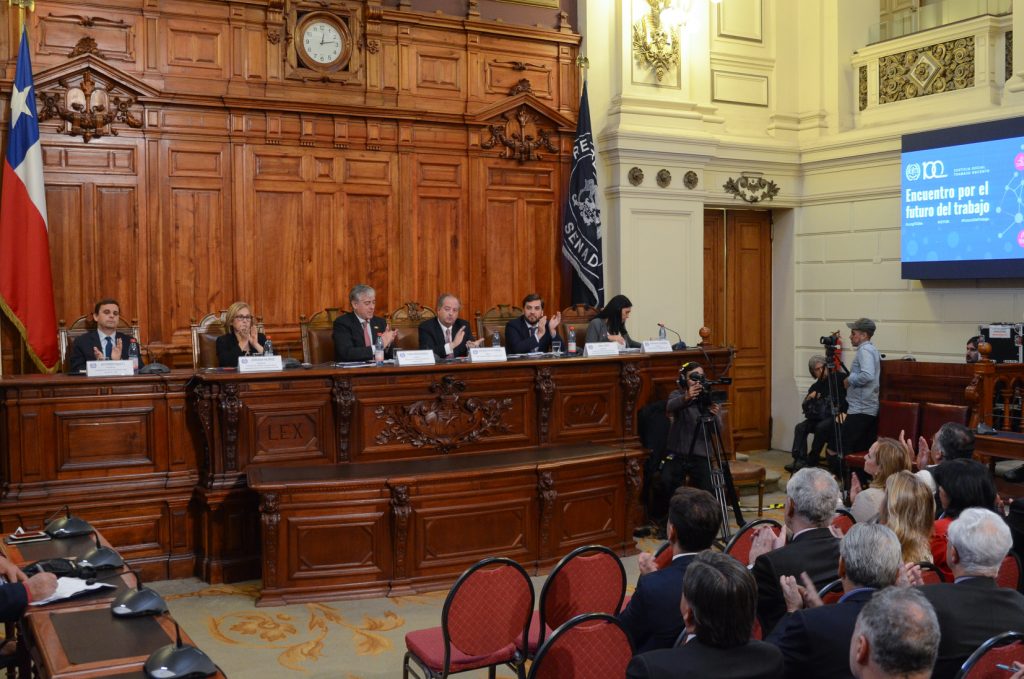 La Oficina de la Organización Internacional del Trabajo para el Cono Sur de América Latina (OIT), en conjunto con las comisiones de Trabajo y Previsión Social del Senado y de la Cámara de Diputados de Chile, realizaron el seminario “Encuentro por el Futuro del Trabajo en Chile”, para analizar, junto al ministro del Trabajo y Previsión Social, Nicolás Monckeberg, las conclusiones del Informe de la Comisión Mundial sobre el Futuro del Trabajo.