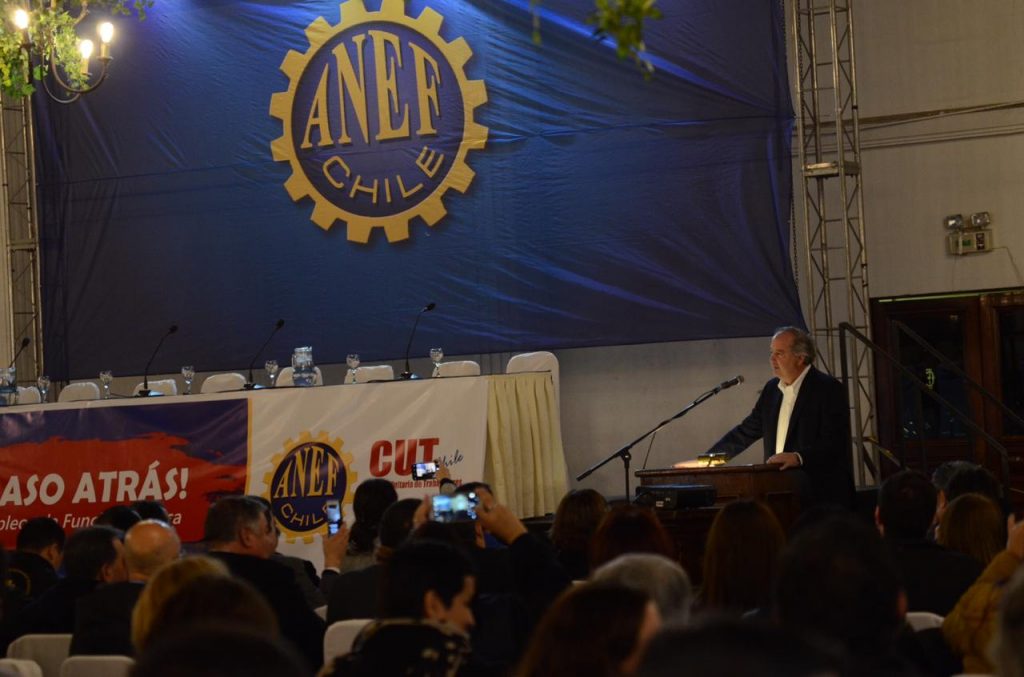 La instancia contó con la participación del presidente de la ANEF, José Pérez, la presidenta de la Central Unitaria de Trabajadores, Bárbara Figueroa, y el presidente del Senado, Jaime Quintana.