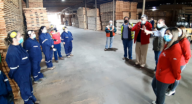 Acompañado por la seremi del Trabajo y Previsión Social, Ana Paola Ponce y la directora del Instituto de Seguridad Laboral (ISL), Francisca Calquín, estuvo en Maderas Jorge Caro y el Vivero Arauco, ambas pymes con alta presencia femenina, lo que fue destacado por el titular del Trabajo.