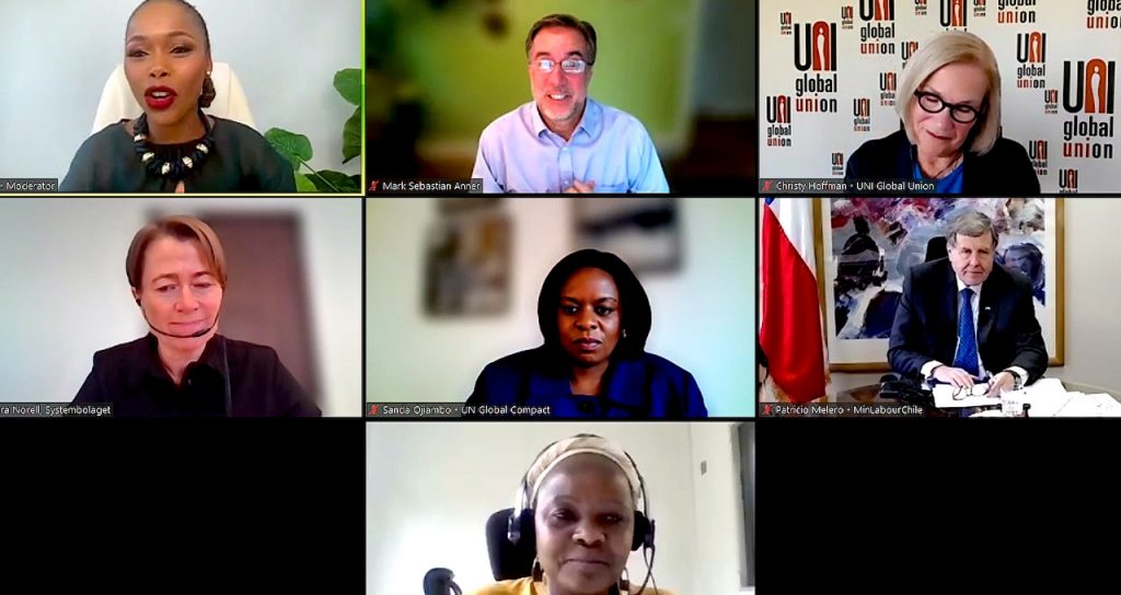 En él participaron la ministra de Trabajo, Empleo y Diálogo Social de Francia, Elisabeth Borne; el profesor de la Universidad de Pensilvania, Mark Anner; la secretaria general de UNI Global Unión, Christy Hoffman; la directora ejecutiva de UN Global Compact, Sanda Ojiambo, y el representante de Europeche, Ment van der Zwan.