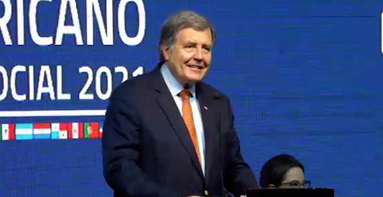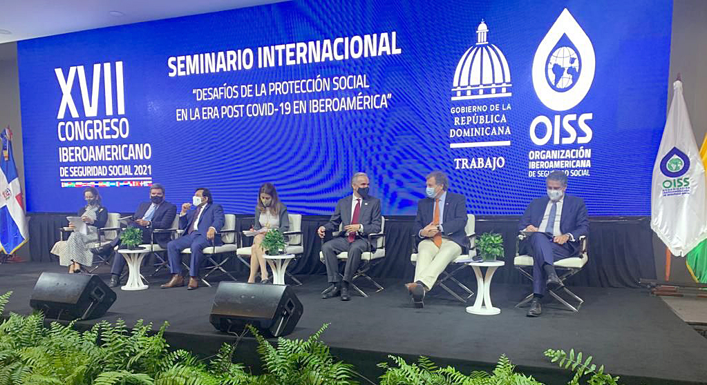 El secretario de Estado participó en el XVII Congreso Iberoamericano de Seguridad Social, que se desarrolla en Santo Domingo, República Dominicana. En la oportunidad, expuso en el Panel “Retos de la protección social en la postpandemia”, donde abordó, entre otros aspectos, las medidas prepandemia, como la Ley de Honorarios, el aumento del 50% de las pensiones a los beneficiarios del Pilar Solidario, la Política Nacional de Seguridad y Salud en el Trabajo, la modernización de la Superintendencia de Seguridad Social (Suseso) y la implementación de la Ley SANNA.