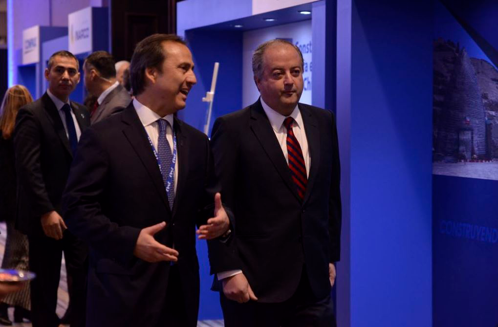 El ministro del Trabajo y Previsión Social, Nicolás Monckeberg, junto a la subsecretaria de Previsión Social, María José Zaldívar, asistieron al desayuno anual de los empresarios de la construcción que se realizó en Casapiedra, el que fue encabezado por el Presidente de la República, Sebastián Piñera.