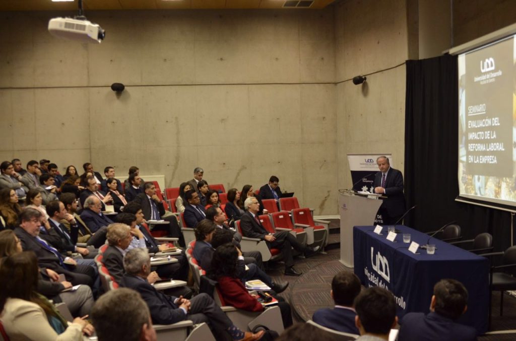 El ministro del Trabajo y Previsión Social, Nicolás Monckeberg, participó esta mañana en el Seminario: “Evaluación del Impacto de la Reforma Laboral en la Empresa”, organizado por la facultad de Derecho de la Universidad del Desarrollo. En la instancia, se abordó y analizó las implicancias que ha tenido la reforma laboral en las empresas, grupos negociadores, negociación colectiva y extensión de beneficios.