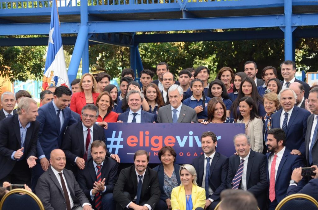 El ministro del Trabajo y Previsión Social, Nicolás Monckeberg, acompañó al Presidente Sebastián Piñera y al ministro del Interior y Seguridad Pública, Andrés Chadwick, en el lanzamiento del Plan Elige Vivir Sin Drogas, iniciativa que busca desincentivar el consumo de drogas en niños y adolescentes.