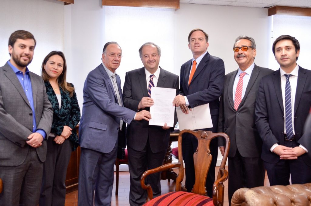 El ministro del Trabajo y Previsión Social, Nicolás Monckeberg, recibió propuesta a la Reforma Previsional y de Pensiones por parte de la bancada de parlamentarios DC y PR, que estuvo liderada por los diputados Matías Walker y José Pérez.