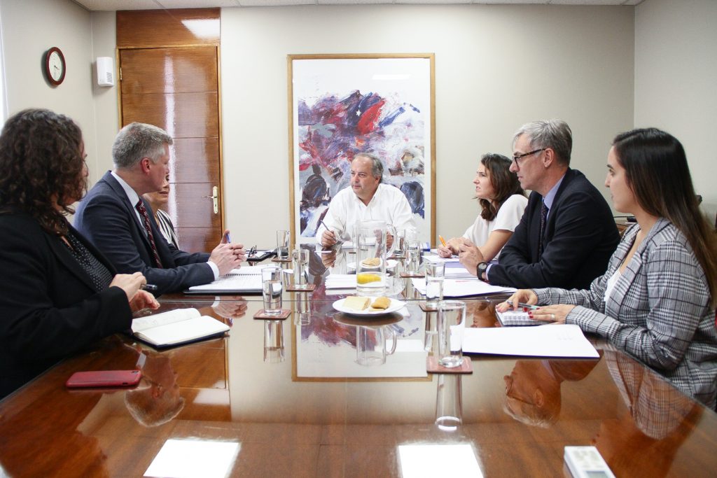 El ministro del Trabajo y Previsión Social, Nicolás Monckeberg, se reunió esta tarde con el Subsecretario Adjunto de Servicios de la “Administración de Comercio Internacional del Departamento de Comercio de los Estados Unidos”, James Sullivan, y con la agregada Comercial de Estados Unidos en Chile, Megan Schildgen, para abordar temas de la cartera tales como el rumbo de las iniciativas que ha presentado el gobierno al Congreso en torno a pensiones, de modernización digital y mercado laboral.