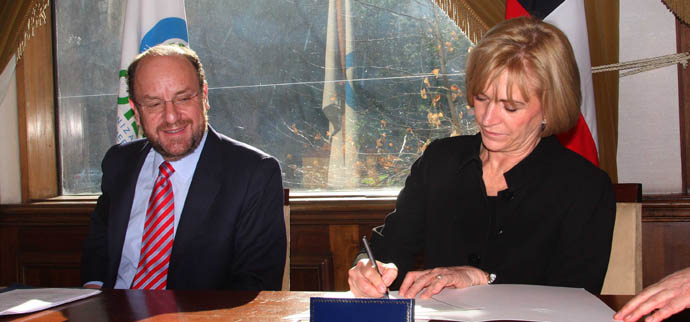 Los Ministros de Relaciones Exteriores, Alfredo Moreno, y del Trabajo, Evelyn Matthei, suscribieron esta mañana el Acuerdo de Aplicación del Convenio Multilateral Iberoamericano de Seguridad Social, que permitirá a la comunidad de chilenos residentes en Iberoamérica eximirse de efectuar una doble cotización, entre otros beneficios.