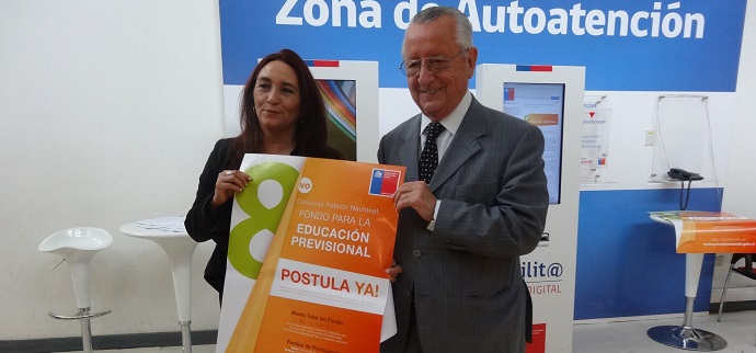 El Seremi del Trabajo y Previsión Social, Iván Quintana, junto a la Directora Regional del IPS, Patricia Saldías hicieron un llamado a postular a la octava versión del Fondo para la Educación Previsional, que este año busca potenciar la participación en las regiones.