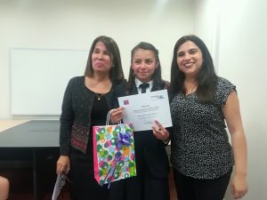 En la ceremonia de premiación las artistas recibieron un obsequio y diploma, ocasión en que estuvieron acompañadas por su familia; el director del Liceo de Niñas de Rancagua, Mauricio Aguerrebere; y por la orientadora del establecimiento, Magaly Ahumada.