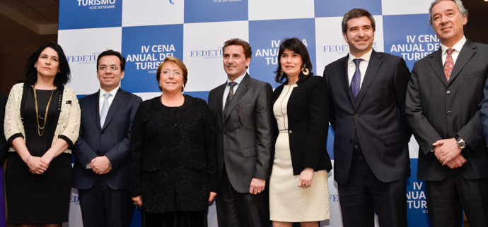 La Presidenta de la República, Michelle Bachelet, junto a la Ministra del Trabajo y Previsión Social, Javiera Blanco; y otras autoridades de gobierno participaron en la IV Cena Anual del Turismo realizada en Casapiedra.