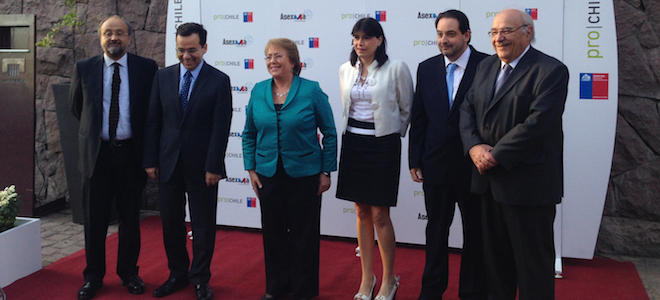 La Presidenta Michelle Bachelet junto a la ministra del Trabajo y Prevision Social, Javiera Blanco; y el titular de Economía, Luis Felipe Céspedes, participaron en la junta anual de la Asociación de Exportadores y Manufacturas ASEXMA.