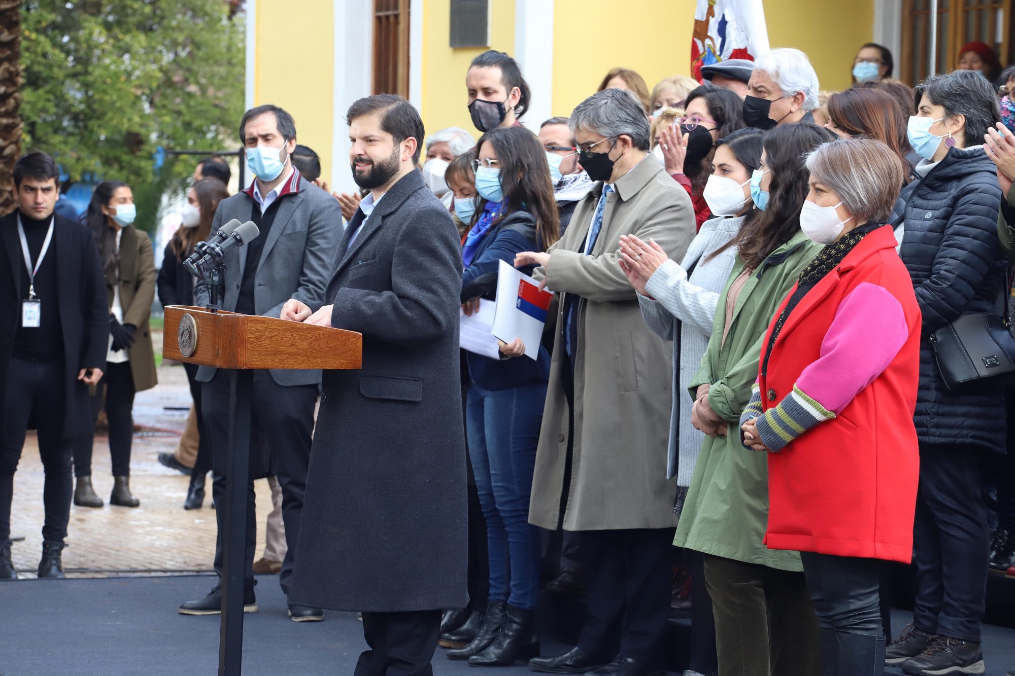 El Mandatario estuvo acompañado por los Ministros de Hacienda y Economía, Mario Marcel y Nicolás Grau, respectivamente, y las Ministras del Trabajo y Previsión Social, Jeannette Jara; Vocera de Gobierno, Camila Vallejo; de la Mujer, Antonia Orellana; y de Desarrollo Social, Jeanette Vega. Además, asistió la Alcaldesa de Quinta Normal, Karina Delfino, parlamentarios y parlamentarias del distrito.