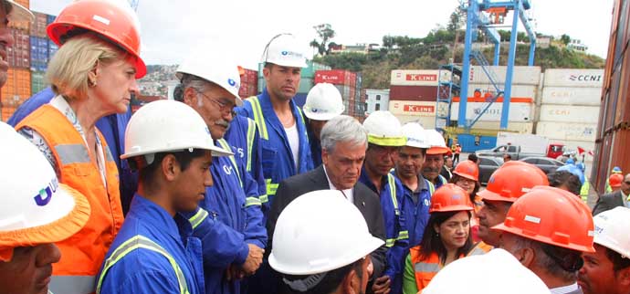El Presidente de la República, Sebastián Piñera, junto a la ministra del Trabajo y Previsión Social, Evelyn Matthei, se reunieron con trabajadores y dirigentes sindicales portuarios de Valparaíso, agrupados en la Confederación de Trabajadores Portuarios de Chile(Cotraporchi).