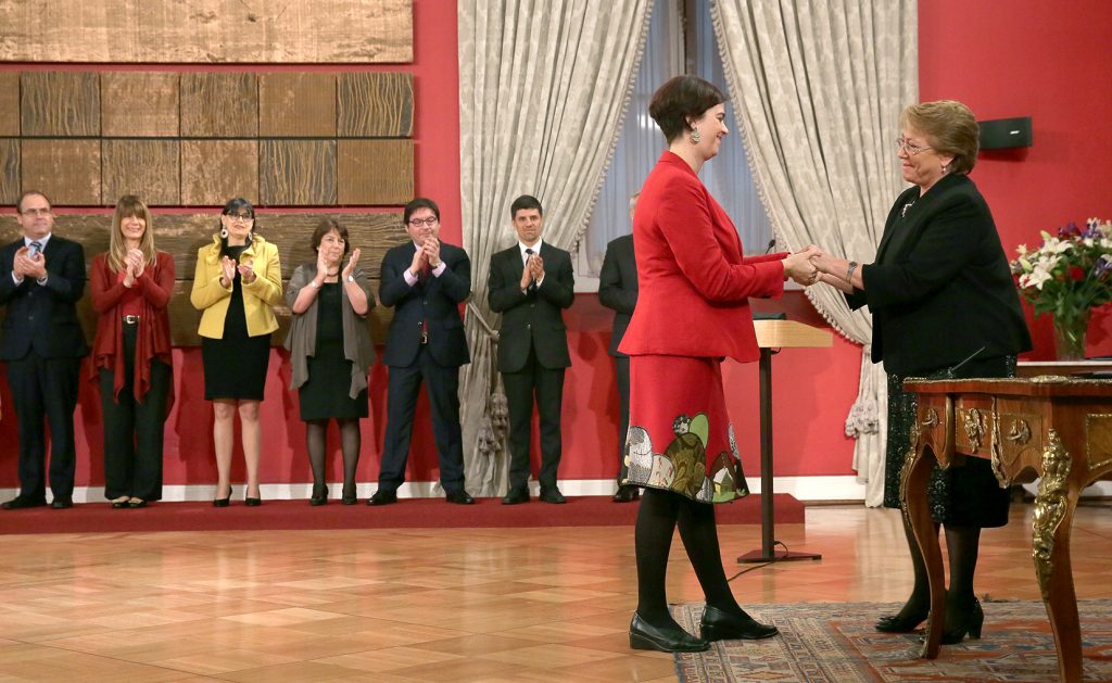 La Ministra del Trabajo y Previsión Social, Ximena Rincón, acompañó a la Presidenta Michelle Bachelet en el nombramiento de Claudia Pascual como la primera ministra de la Mujer y Equidad de Género.